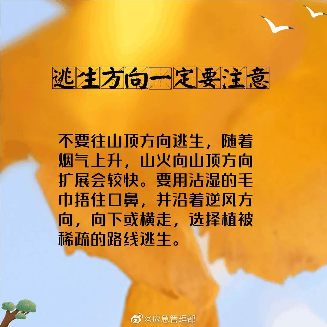 進(jìn)入秋季,天干物燥,是森林火災(zāi)高發(fā)期。當(dāng)遭遇森林草原火災(zāi)時(shí),如何選擇正確的逃生方向?當(dāng)被火圍困時(shí),如何緊急避險(xiǎn)?當(dāng)順利逃出火海時(shí),又該注意哪些危險(xiǎn)?戳圖學(xué)習(xí)↓↓