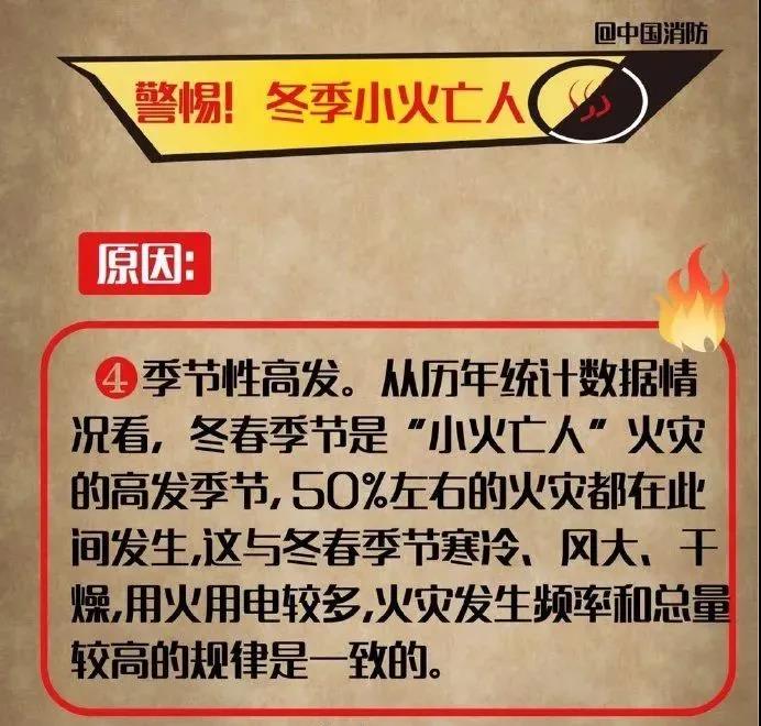 冬季天氣干燥,是火災事故的高發季節,稍有不慎,極易引發火災。在近年來發生的火災事故中,“小火亡人”火災事故比例居高不下,學會正確認識和預防很重要,一起讀圖了解。