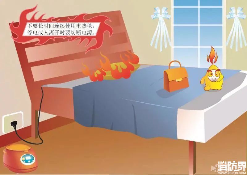 8.用明火和電熱器具取暖,要與可燃物保持安全距離,做到人走火熄、斷電。使用電熱毯要防止長時間通電、防止折疊或受潮。禁止臥床(沙發(fā))吸煙,禁止亂扔火種。燃燒的香燭要與可燃物保持安全距離,并有人看守。