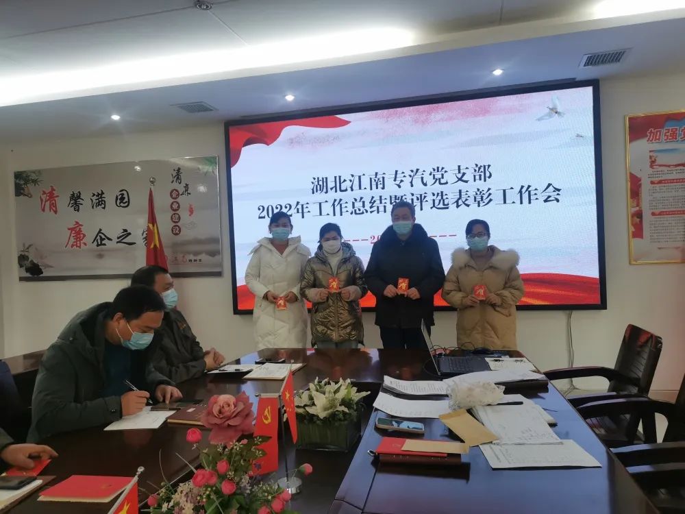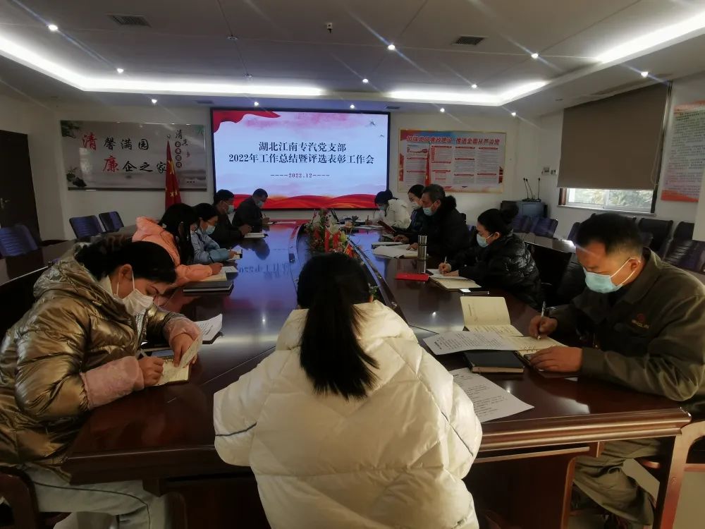 12月13日下午,湖北江南黨支部召開2022年黨建工作總結暨評選表彰工作會,回顧總結2022年黨建工作成績,部署2023年黨建工作任務,以高質量黨建引領公司高質量發展。支部黨員、入黨積極分子參加本次會議。