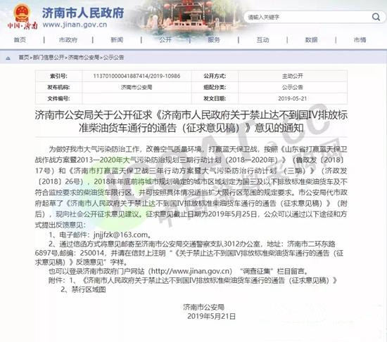 山東濟南市公安局發布《濟南市人民政府關于禁止達不到國排放標準紫油貨車通行的通告(征求意見稿)》,通告將將禁止達不到國Ⅳ排放標準柴油貨車進入濟南市部分路段。屆時達不到國Ⅳ排放標準柴油貨車違反規定進入禁行區域的,按照《中華人民共和國道路交通安全法》和有關規定,處200元罰款并記3分。